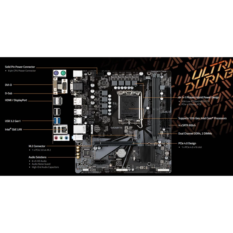 مادربرد Gigabyte H610M S2H DDR4 rev. 1.0 یکی از محصولات خوشساخت و قابلاعتماد شرکت گیگابایت است که برای کاربرانی طراحی شده که به دنبال سیستمی پایدار، اقتصادی و در عین حال آیندهنگر هستند. این مادربرد با چیپست Intel H610 عرضه میشود و از پردازندههای نسل دوازدهم و سیزدهم Intel Core، Pentium Gold و Celeron با سوکت LGA1700 پشتیبانی میکند. پشتیبانی از رمهای DDR4 تا فرکانس 3200 مگاهرتز به کاربران اجازه میدهد تا در کنار هزینه کمتر نسبت به DDR5، عملکرد سریع و قابلاعتمادی را تجربه کنند.